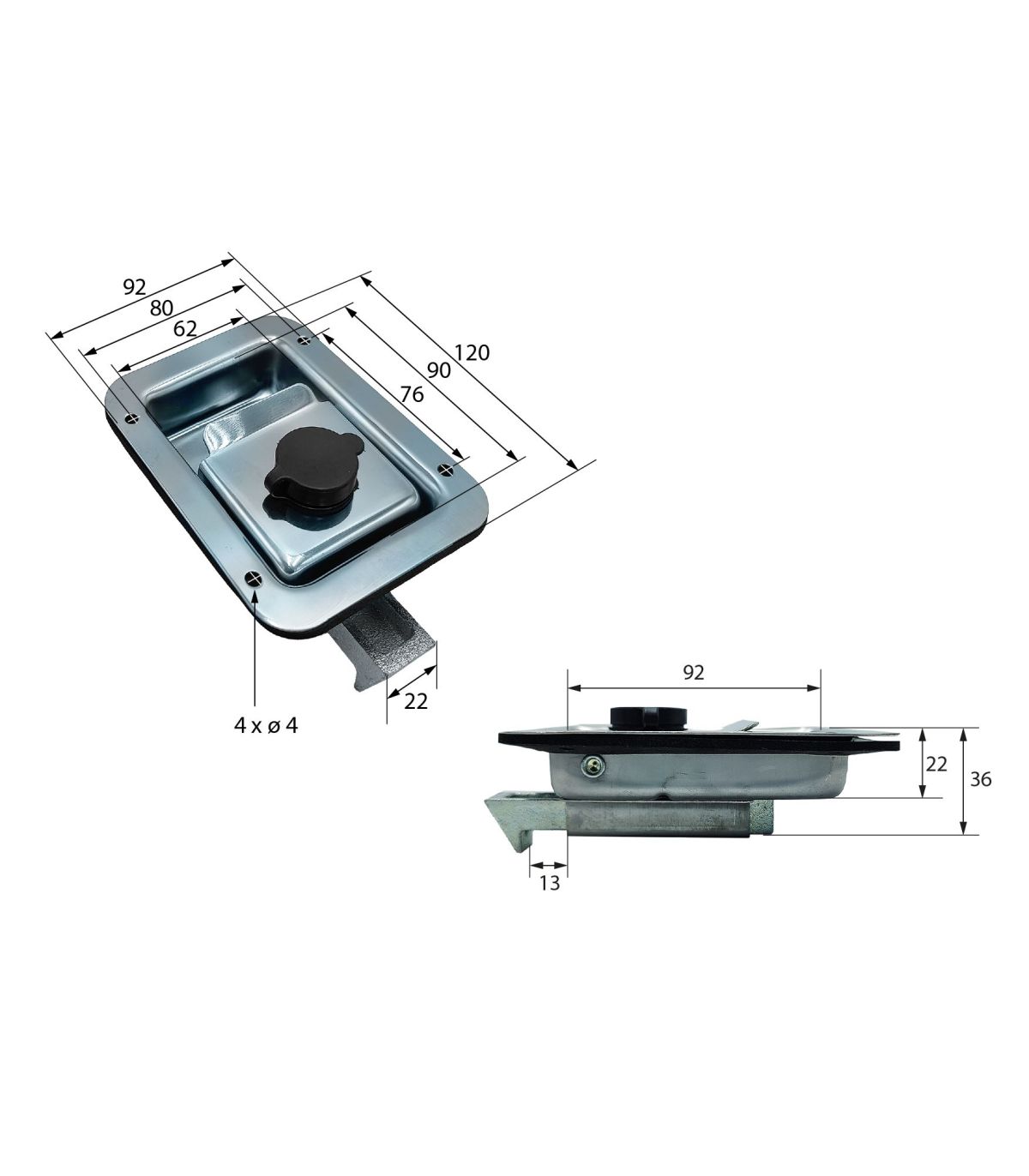 CIERRE DE CAJÓN DE HERRAMIENTAS, MANETA EMPOTRADA CERRADURA CON LLAVE DE 120 X 92 mm.