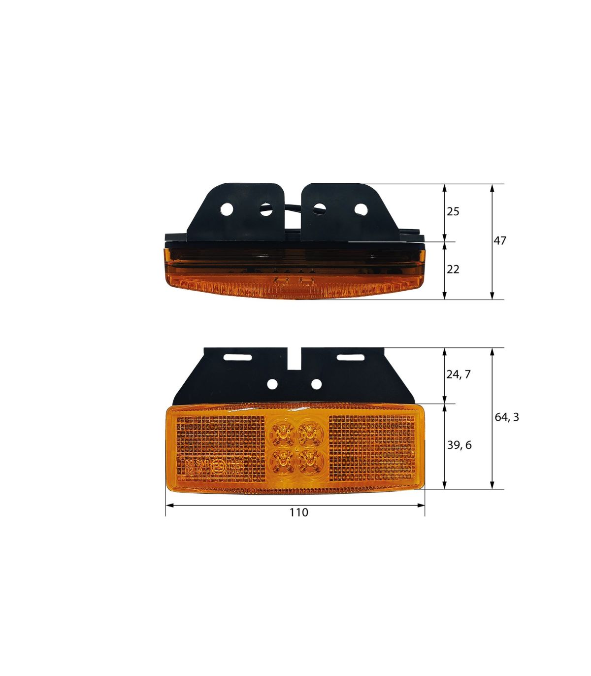 PILOTO DE GALIBO POSICIÓN LATERAL ÁMBAR CON SOPORTE EN L