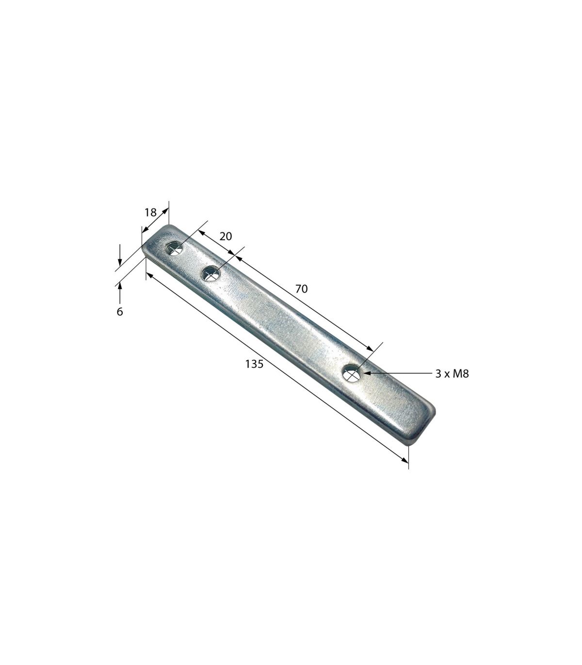 PLETINA DE 3 AGUJEROS ROSCADOS 135X18 M8
